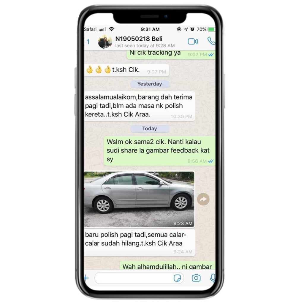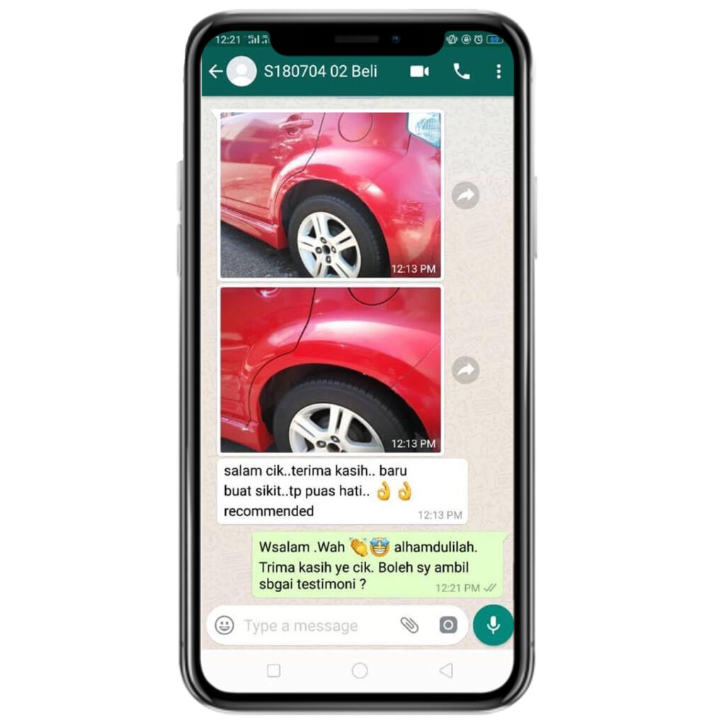 ” Alhamdulillah lepas guna V1-AMMO kereta dah hilang calar tanpa perlu keluar modal yang banyak untuk hantar ke tukang cat, dan kini sentiasa standby V1-AMMO bila ada calar2 baru yang muncul “